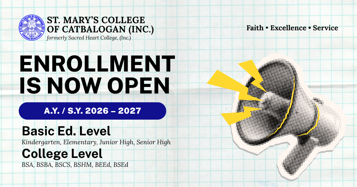 St. Mary’s College of Catbalogan (Inc.) warmly announces that enrollment and admission for School Year/Academic Year 2026–2027 officially opened on April 13, 2026.